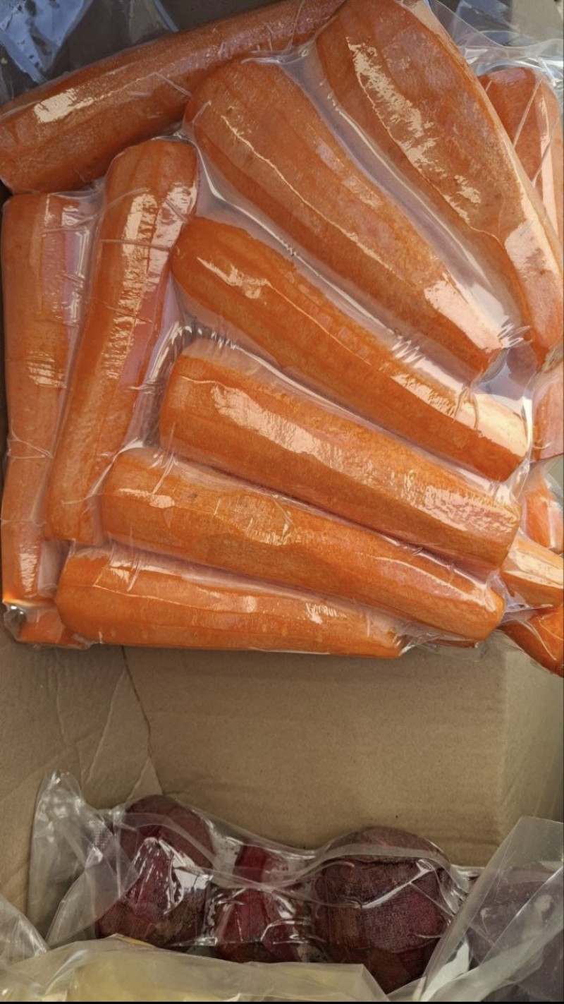 Очищенные овощи- морковь по 5 кг в вакуумной упаковке.