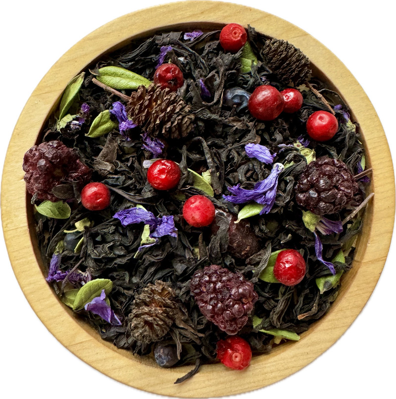 Состав: чай черный крупнолистовой, шиповник, плоды можжевельника, сублимированная ежевика, сублимированная брусника, лист брусники, мальва, ольха соплодия, ароматизатор
