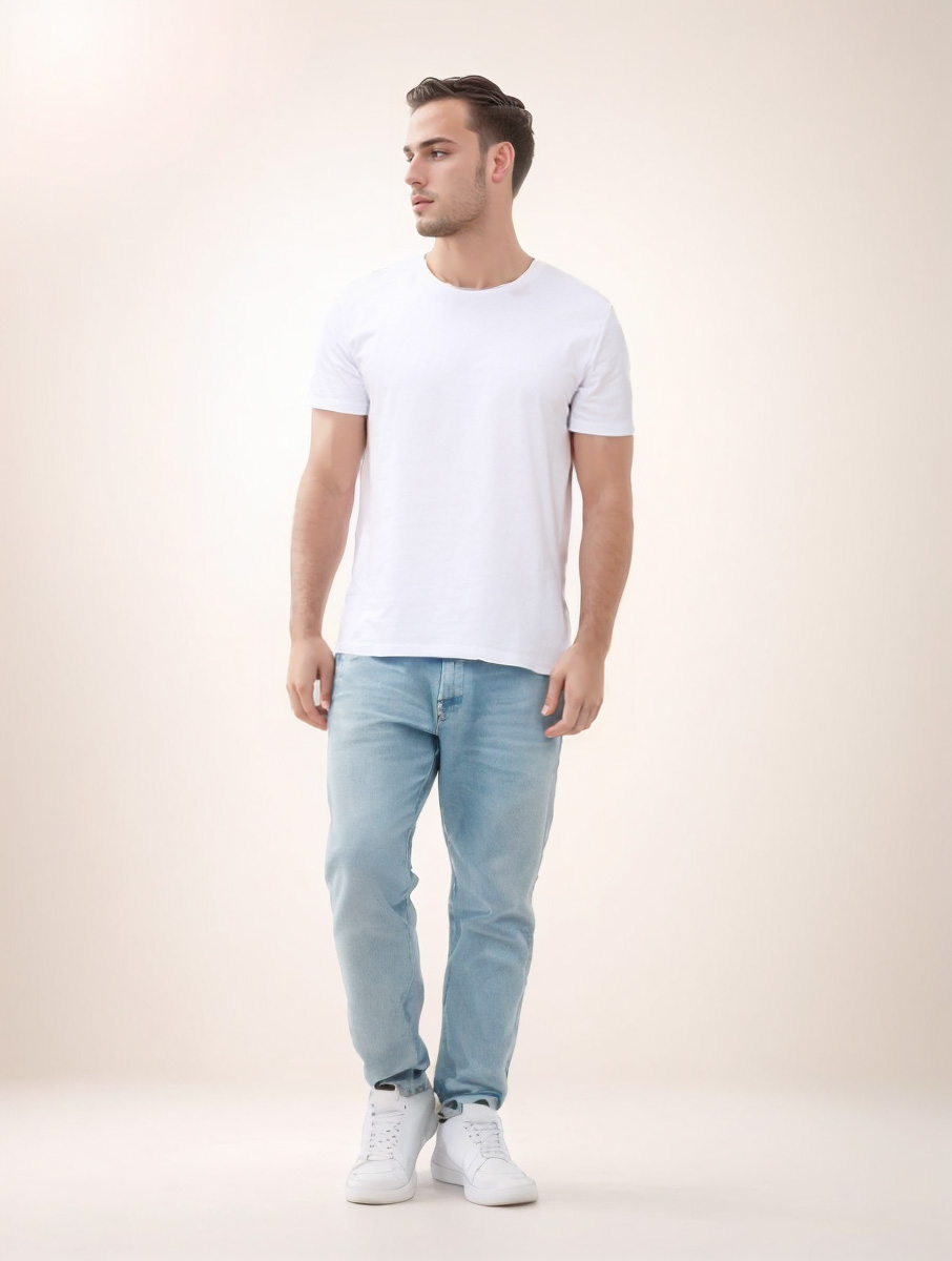 Хлопковая базовая футболка унисекс, прямой крой, с коротким рукавом.