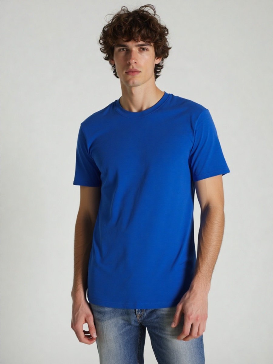 Хлопковая базовая футболка унисекс, прямой крой, с коротким рукавом.