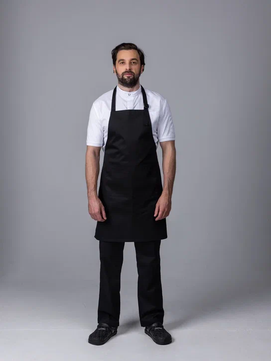 Базовый черный фартук с грудкой из плотной ткани с карманами и лямкой на шее, создан специально для использования в сфере обслуживания или общественного питания. Ткань водоотталкивающая, позволяет избегать намокания и загрязнений. Ткань: 35% хлопок/65% ПЭ.