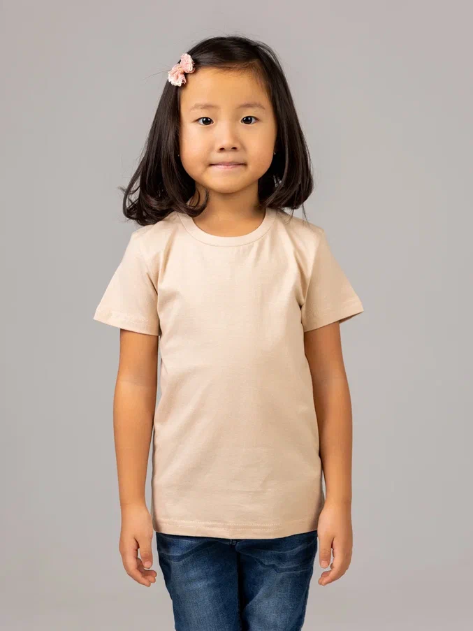 Хлопковая базовая футболка с коротким рукавом. Плотность 160гр. Ткань - Кулирная гладь, из кардной пряжи. Размерный ряд от 98 до 152 размера.