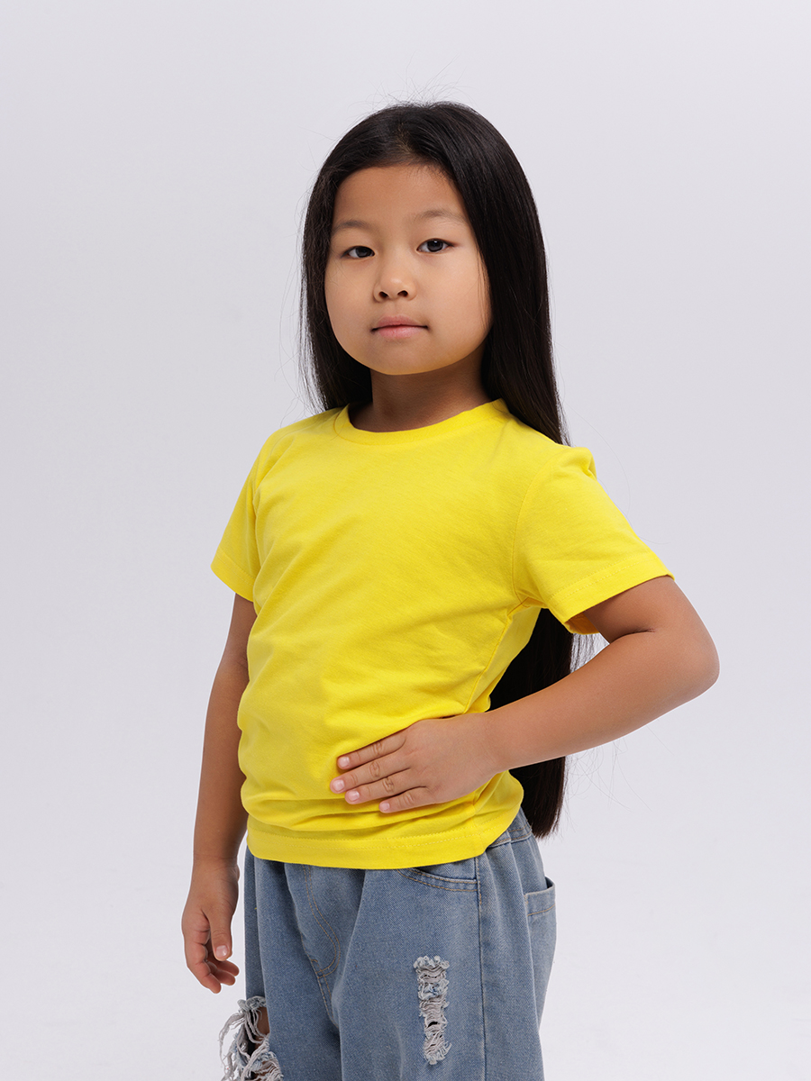 Хлопковая базовая футболка с коротким рукавом. Плотность 160гр. Ткань - Кулирная гладь, из кардной пряжи. Размерный ряд от 98 до 152 размера.