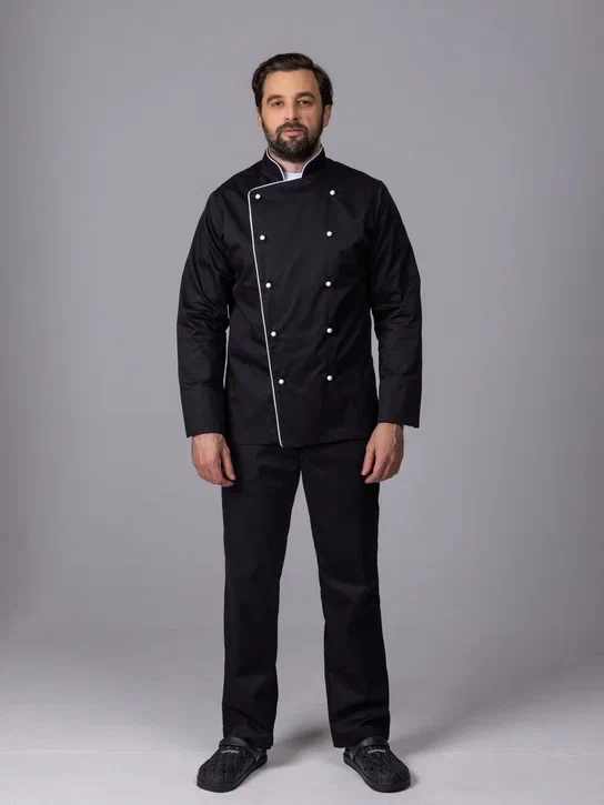 Классический китель для повара на пуклях с контрастным кантом. Стильный приталенный крой, хорошая посадка. Длина рукава регулируется манжетом. Выполнен из высококачественной ткани с высоким содержанием хлопка (55%), для более комфортного контакта с кожей, содержит полиэстер (45%) для лучшей износостойкости.