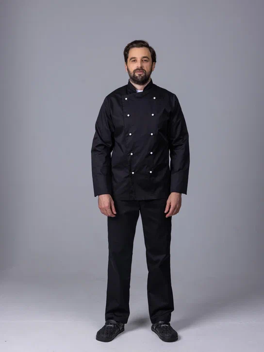 Классический китель для повара на пуклях. Стильный приталенный крой, хорошая посадка. Длина рукава регулируется манжетом. Выполнен из высококачественной ткани с высоким содержанием хлопка (55%), для более комфортного контакта с кожей, содержит полиэстер (45%) для лучшей износостойкости.
