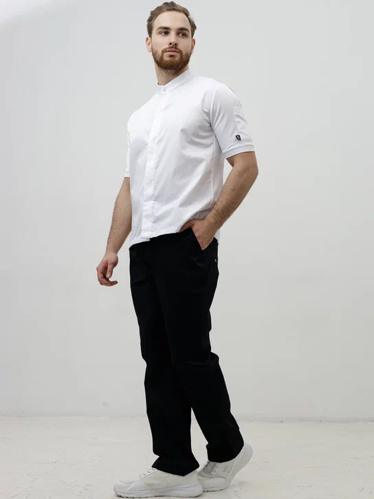 Летний вариант униформы, легкий китель-поло с сетчатой спинкой (дышащая спортивная ткань-сетка dry-fit на спинке и рукавах). Это вариация классического кителя повара с учётом современных требований к дизайну и практичности.