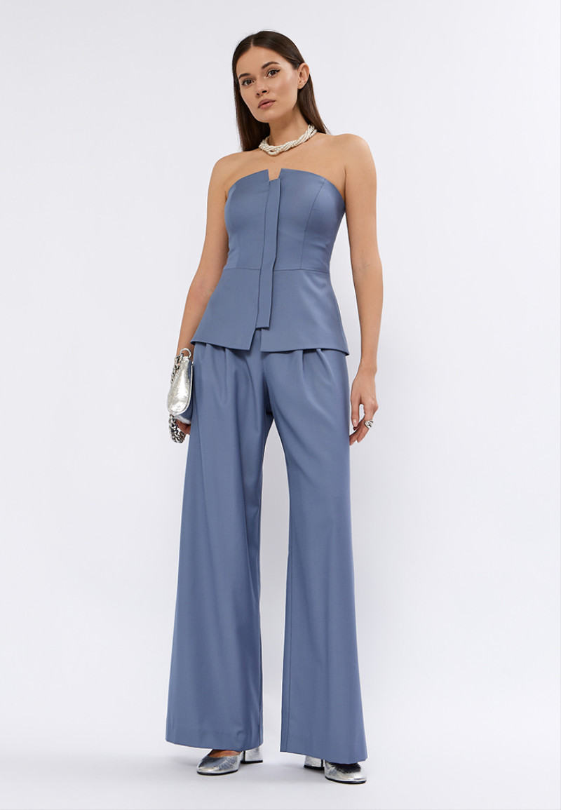 Магический серо-голубой оттенок добавляет утонченности, а плавные линии создают эффектный и выразительный силуэт.