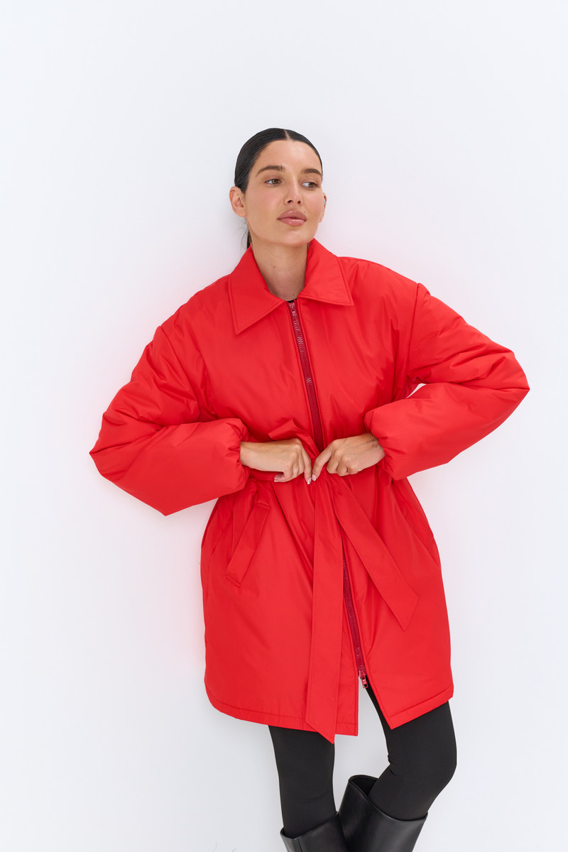 Зимняя куртка на молнии средней длины с объемными рукавами на резинке и приталенным силуэтом. Ткань верха с пропиткой от воды.
