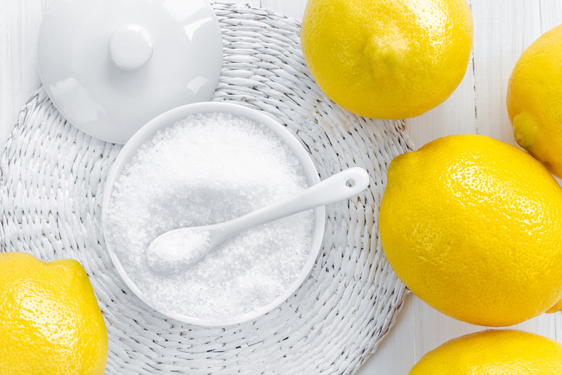 Обычно лимонная кислота используется в пищевой промышленности в виде водного раствора концентрации от 20 до 50%, который готовят 1-2 раза в смену. Температура воды, используемой для приготовления раствора, должна быть не выше 25°С. Лимонная кислота используется в качестве катализатора в производстве инвертного сиропа, синергиста антиокислителей жиров и жиро-содержащих продуктов, стабилизирует закисное железо в минеральных водах в количестве до 100 мг/л, предотвращает коагуляцию белка в поверхностном слое сосисок. Лимонная кислота разрешена для розничной продажи населению и применения в домашних условиях.