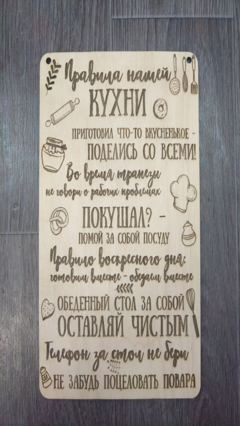 Топпер деревянный изготовленный из березовой фанеры класс 1⁄1. Можно использовать как декоративный элемент на кухне, а также напоминание о порядке и гигиене для членов семьи или гостей.