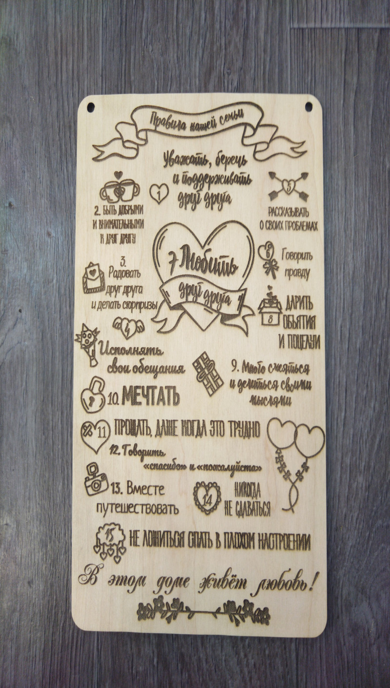 Топпер деревянный изготовленный из березовой фанеры класс 1⁄1. Можно использовать как наглядный символ семейных ценностей и принципов чтобы укреплять отношения между членами семьи.