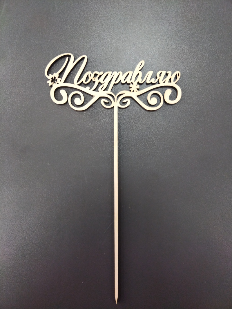 Топпер деревянный изготовленный из березовой фанеры класс 1⁄1. Используется для украшения тортов, букетов так же можно использовать как самостоятельный декор. Можно красить любыми красками по дереву.