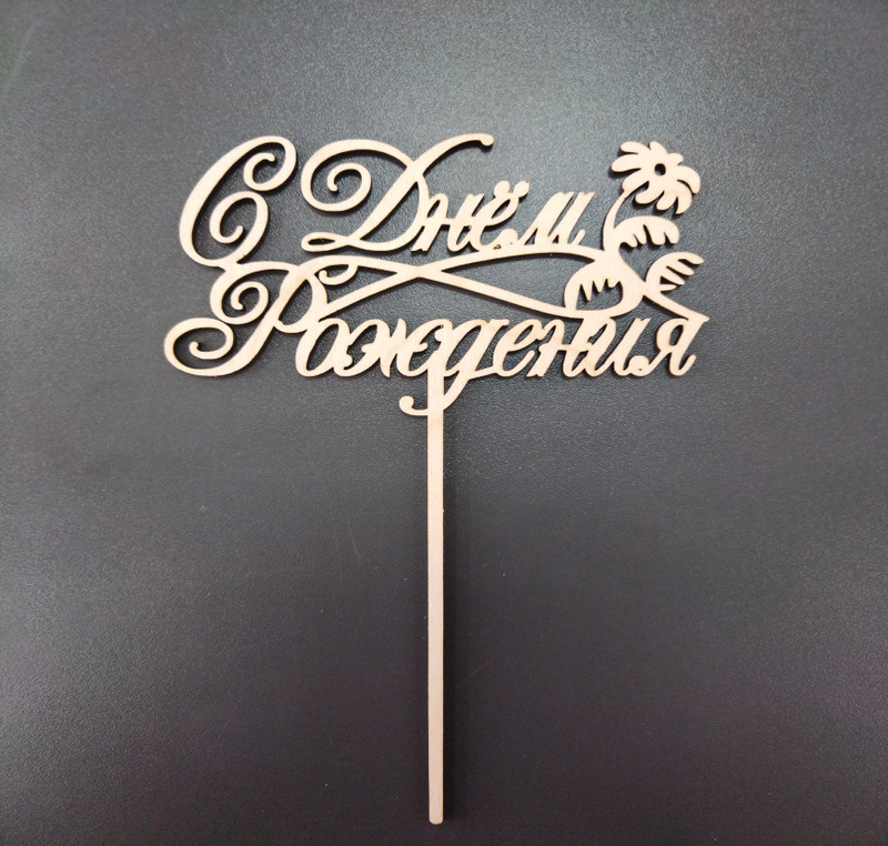 Топпер деревянный изготовленный из березовой фанеры класс 1⁄1. Используется для украшения тортов, букетов так же можно использовать как самостоятельный декор. Можно красить любыми красками по дереву.