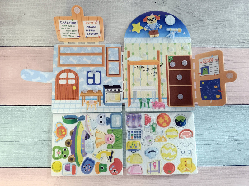 “Космопес и пришельцы” - это сюжетно-ролевая игра из фетра на липучках. Она развивает мелкую моторику, внимание, речь, ассоциативное мышление и воображение. Игровое поле состоит из трех локаций, что позволяет придумать множество сценариев игры.