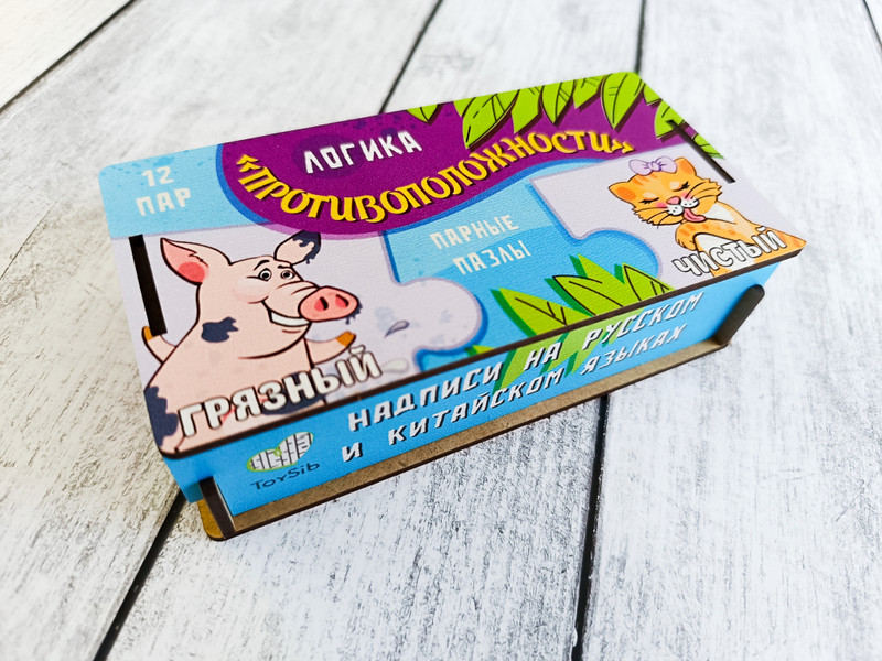 Благодаря ярким карточкам-пазлам с изображениями противоположных понятий дети легко усваивают новые слова и начинают понимать смысловые различия между ними.