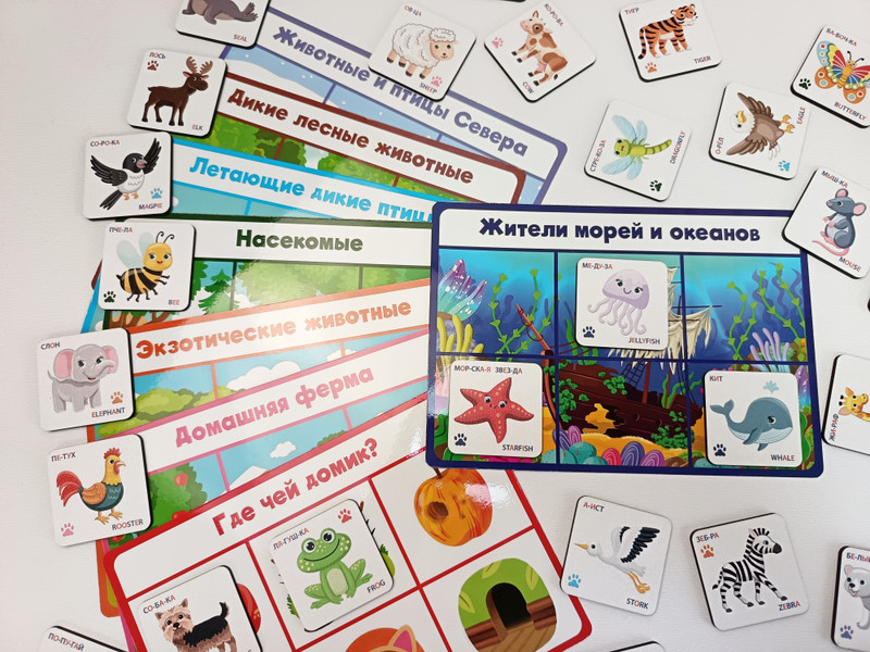 Каждый раз, проговаривайте вслух название того, кто изображен на фишке/карточке, чтоб малыш быстрее запомнил названия всех представленных в игре животных, птиц, рыб, насекомых.