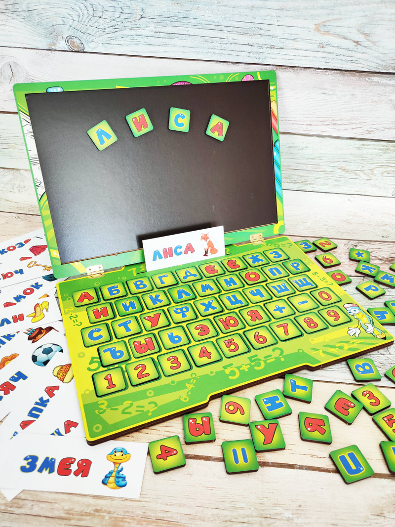 Магнитный ноутбук “Дошколёнок” поможет ребенку освоить азбуку, счет, математические примеры в игровой форме. На карточках есть задания, они помогут маме, папе или бабушке самостоятельно проводить занятия.