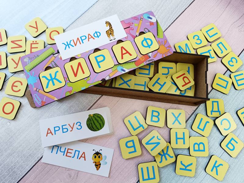 Набор “Первые слова” поможет ребенку освоить азбуку в игровой форме. На карточках есть задания, они помогут маме, папе или бабушке самостоятельно проводить занятия.