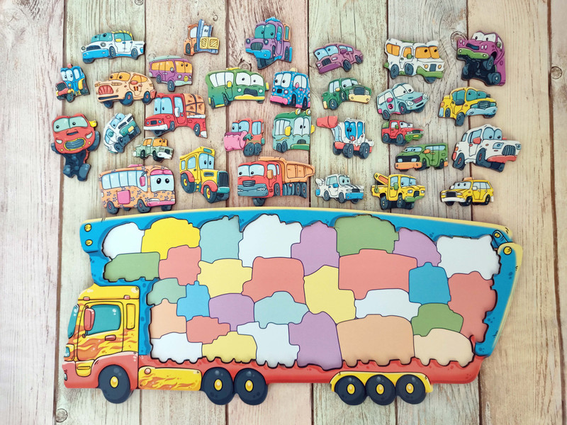 Попросите ребенка собрать пазл, вложив подсказку с очертаниями автомобилей.