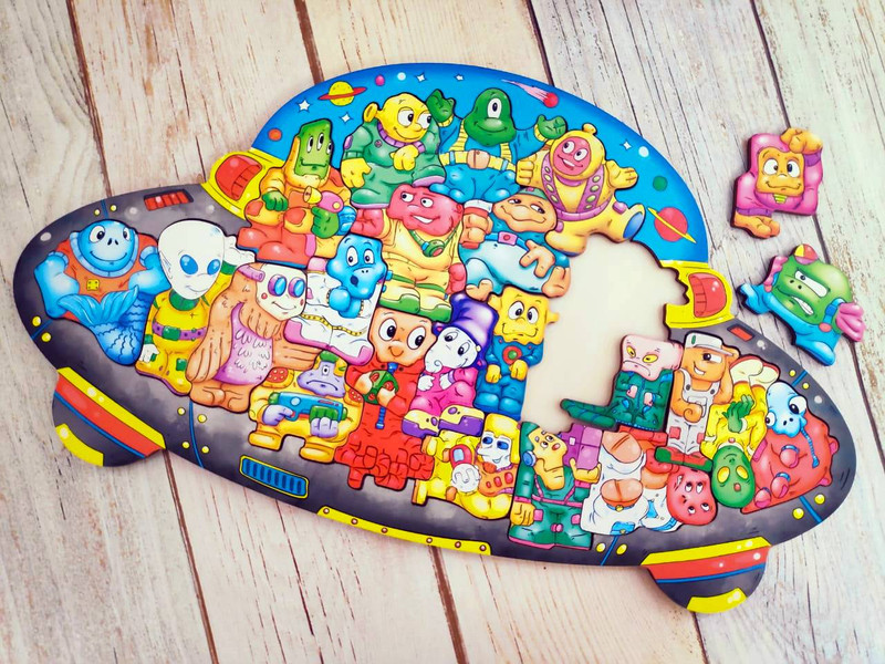 Для начала, выньте из пазла несколько фигурок, перемешайте их и попросите ребенка найти для каждого элемента свое место. Получилось? Теперь смело высыпайте из подложки все фигурки и игра началась! Возникли сложности? Подскажите, что для начала необходимо выложить фигурки по краю подложки. В случае, если у ребенка все же не получается собрать пазл — покажите ему картинку-подсказку.