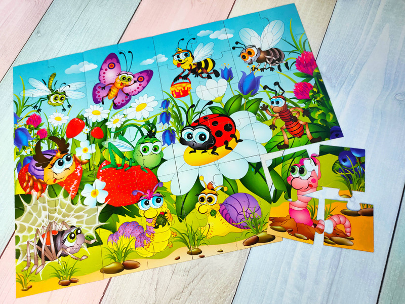 Магнитный пазл “Кто живет в траве?” познакомит Вашего малыша с представителями мира насекомых.