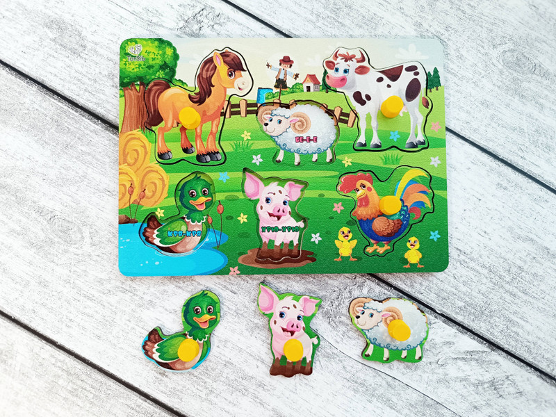 С помощью рамки-вкладыш “Животные фермы” можно изучать животных, искать сходства и отличия.