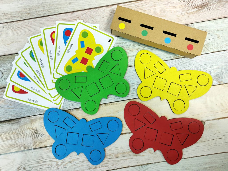 Сортер-мозаика “Бабочки” - многофункциональная игра, которая поможет Вашему малышу освоить цвета, формы, счет, научит сортировать предметы по признаку, выполнять задания по образцу.