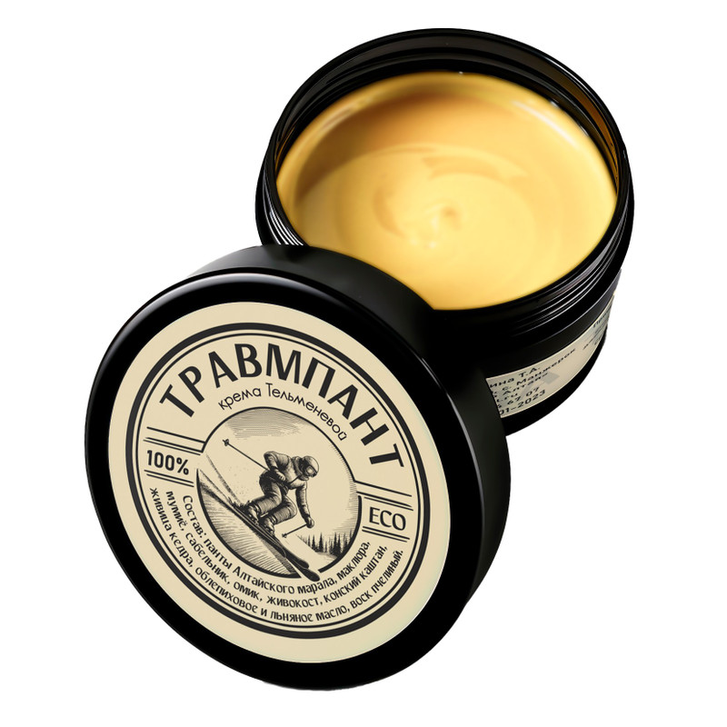 Панты Алтайского марала, маклюра, мумиё, сабельник, омик, живокост, конский каштан, живица кедра, облепиховое и льняное масло, пчелиный воск.