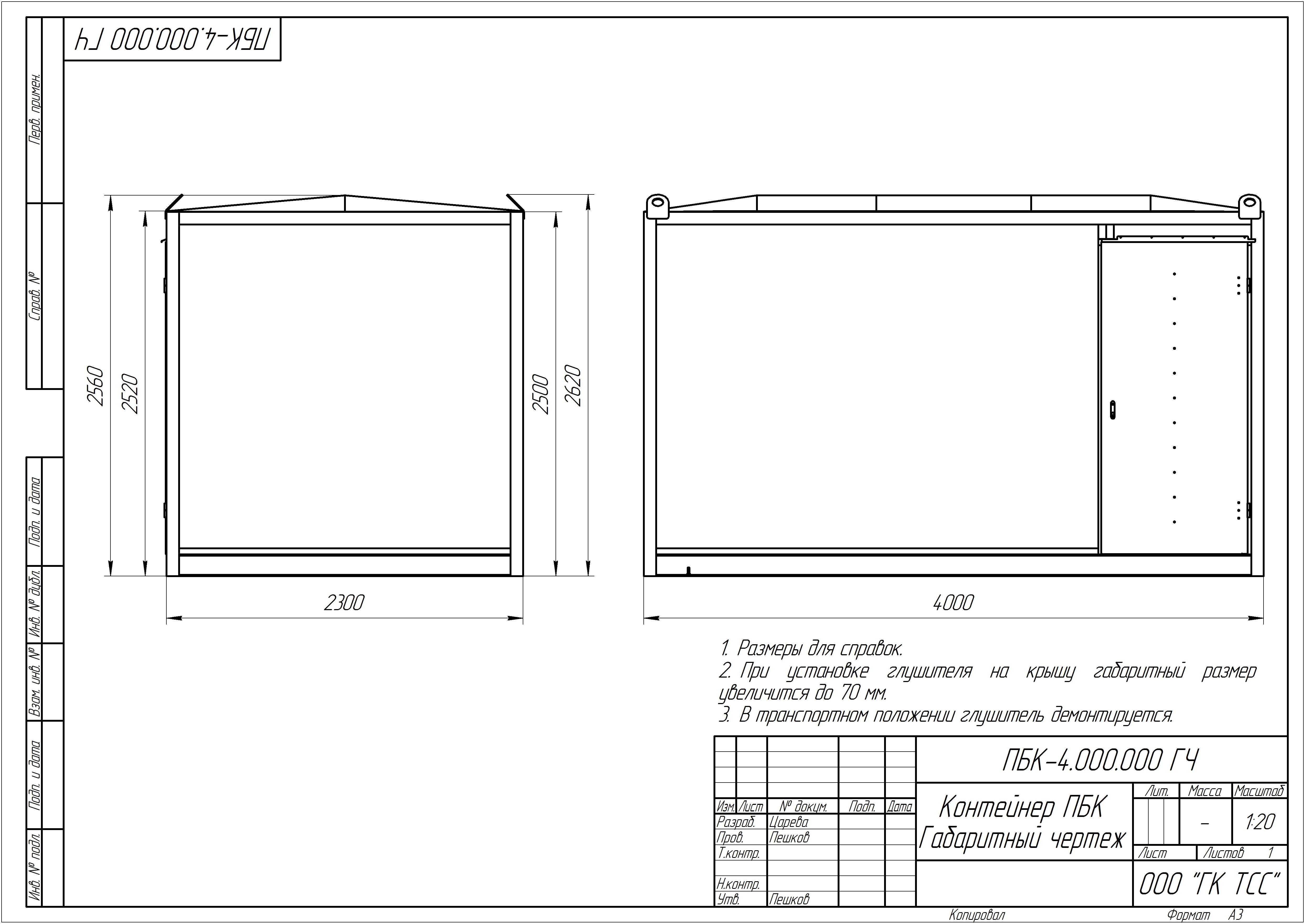 Габаритные Размеры (Д;Ш;В; мм): 4000х2300х2500