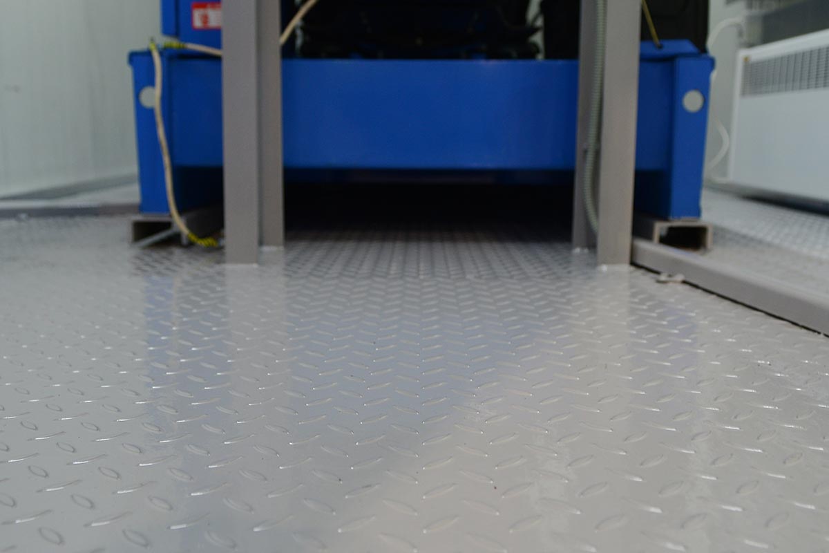 <li>Пол покрыт рифлёным листом толщиной 3 мм.</li>