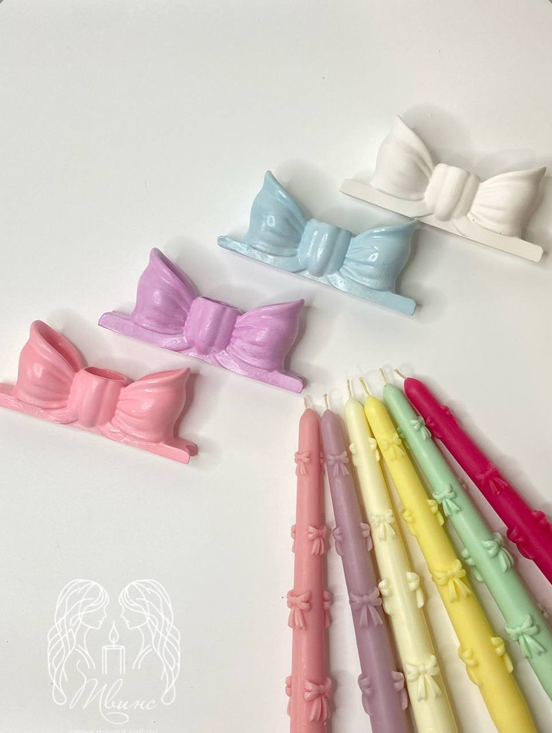 Свеча с Бантиком — тонкая столовая свеча с рельефными бантиками, словно подарок из пастельных грёз.