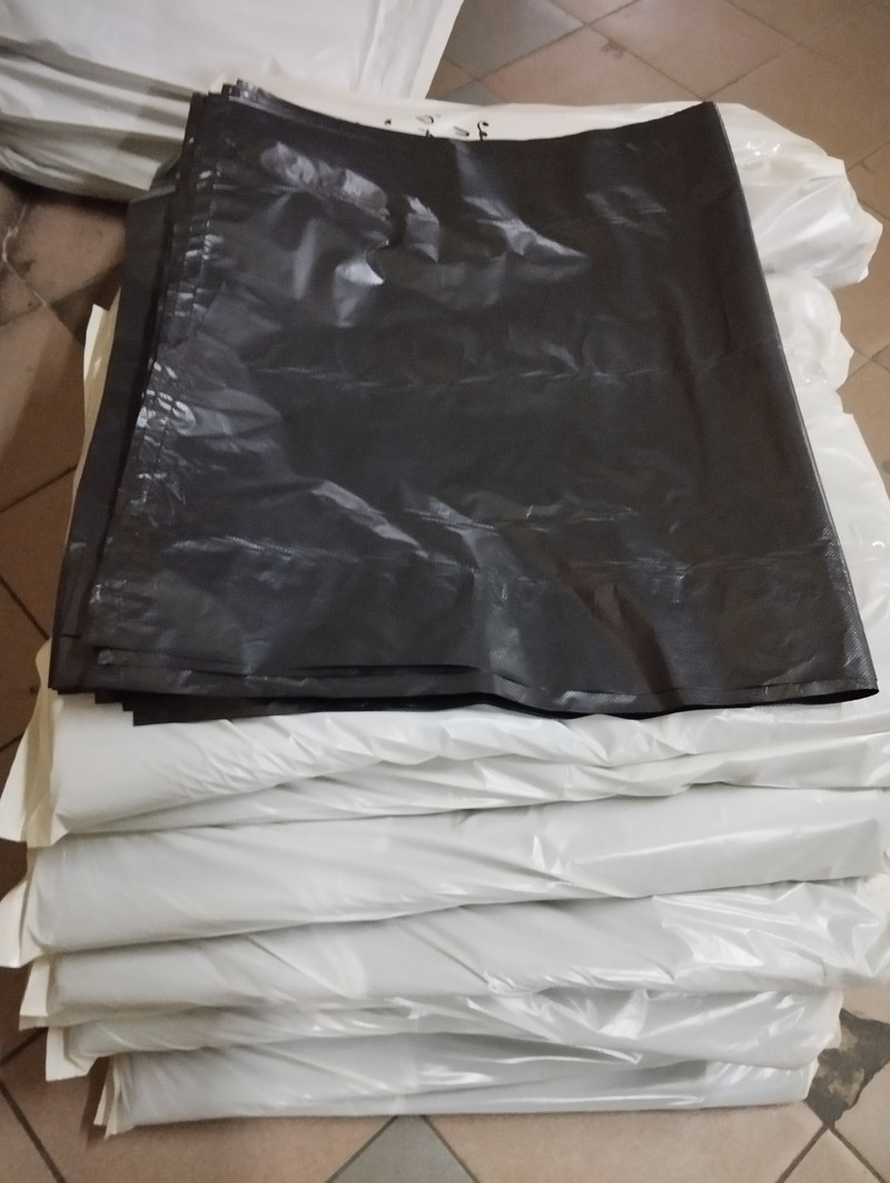 Пакет для мусора изготавливается из полиэтилена смешанного давления, черного цвета. Ширина пакета от 30 см до 80 см., высота пакета от 30 см. до 140 см. Толщина пленки от 25мкм до 55 мкм. Толщина пленки для пакета из полиэтилена высокого давления от 40 мкм до 100 мкм.
