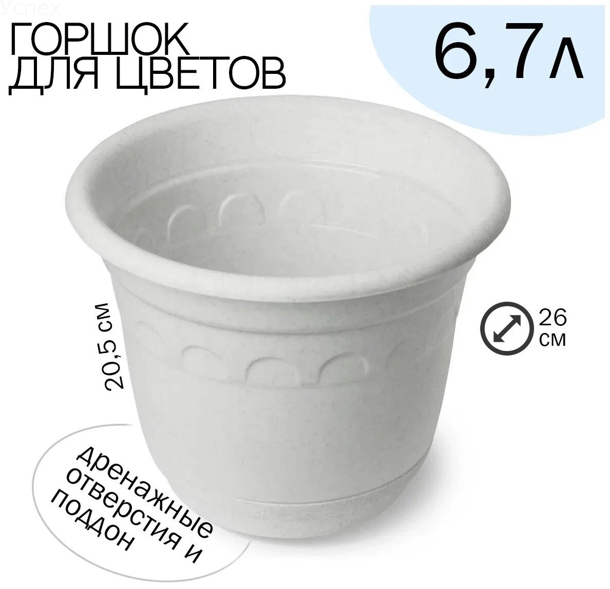 Чтобы купить Горшок “Колывань” мраморный (12) 6,7 л. оптом по цене 84 руб., свяжитесь с поставщиком. Компания поставщик — Успех (ООО «УСПЕХ») из города Иркутск (Иркутская область). Минимальная сумма оптового заказа: 5000 руб. Доставка возможна самовывоз, транспортной компанией, автомобилем, авиатранспортом, железной дорогой, курьером. Способы оплаты: наличными, безналичная оплата.