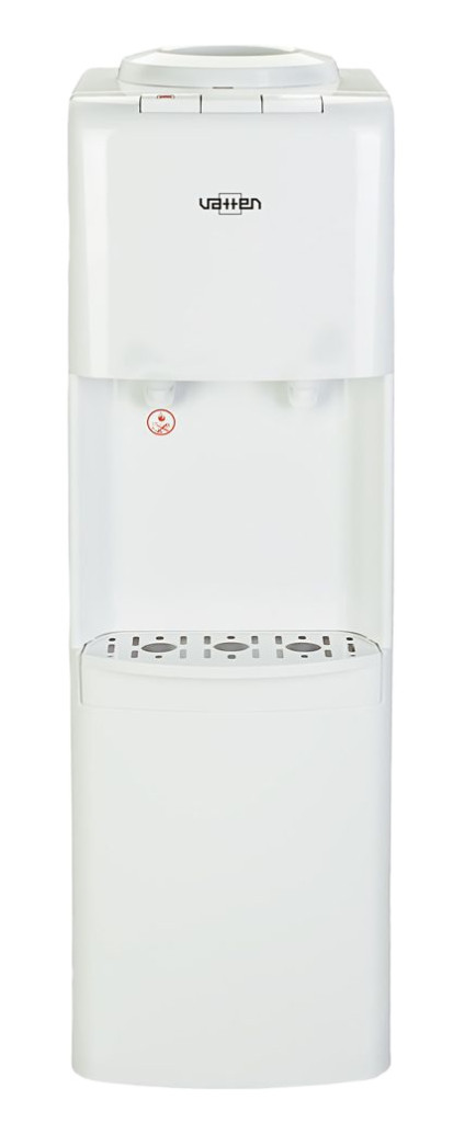 Стандартный, дешёвый напольный кулер для воды, с нагревом, без охлаждения, без шкафчика,. Можно использовать как домашний или офисный, для дома, офиса, на предприятии и в учреждении. Цвет корпуса белый, все панели изготовлены из качественного, устойчивого к ультрафиолету пластика. Два крана, управление кнопками - горячая и холодная вода. Кран горячей воды имеет “защиту от детей”. Пригоден для эксплуатации в очень жарком климате - температура эксплуатации кулера от 10 до 38 градусов Цельсия.