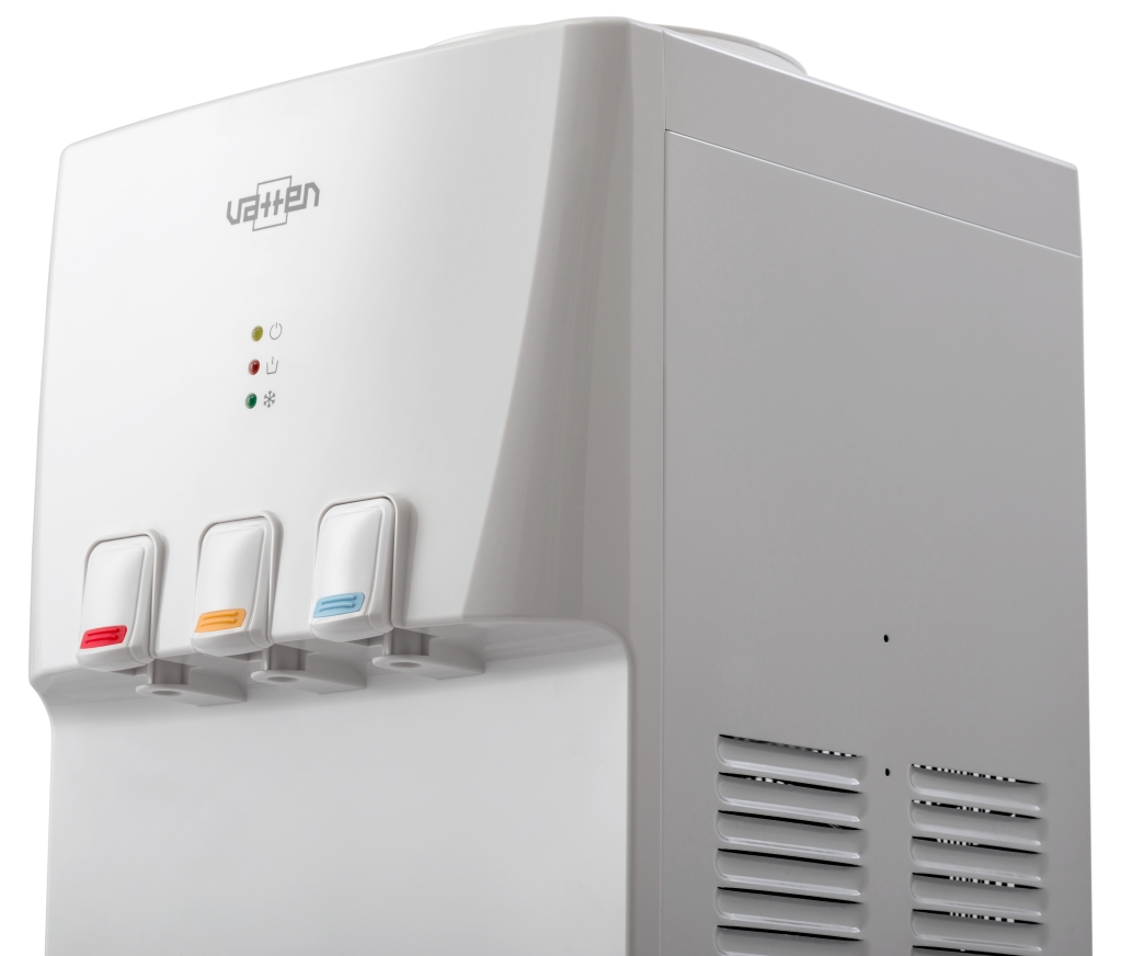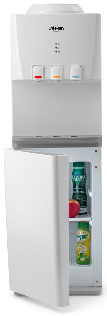 Напольный кулер для воды Vatten V46WKB – аппарат среднего ценового сегмента. Универсальный белый цвет впишется в интерьер любого стиля и назначения – офис, дом, фитнес зал. Высокая производительность компрессорного кулера обеспечит горячими напитками и холодной водой сотрудников крупных предприятий и образовательных учреждений.