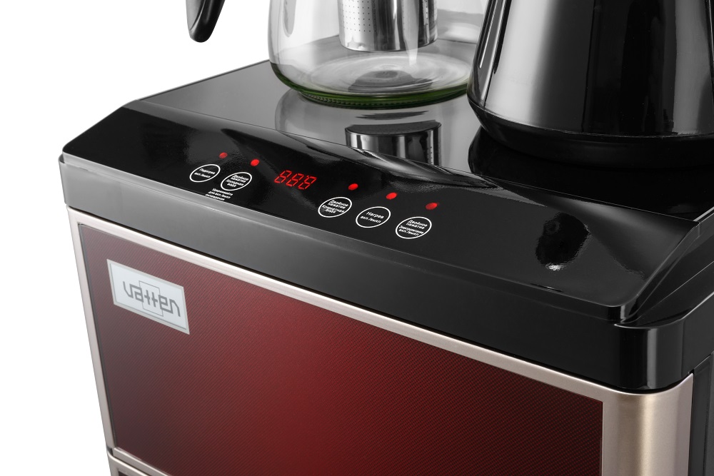 Кулер оснащен двумя чайниками: для заварки чая и для кипячения воды. Чайник для заварки имеет свое ложе для подогрева и поддержания температуры. В чайнике для кипячения вода начинает нагреваться после двойного нажатия на кнопку горячей воды. Нагрев отключается при достижении 100 °С. Встроенный дисплей отображает текущую температуру воды. Если вода в чайнике остыла, можно включить нагрев соответствующей кнопкой.