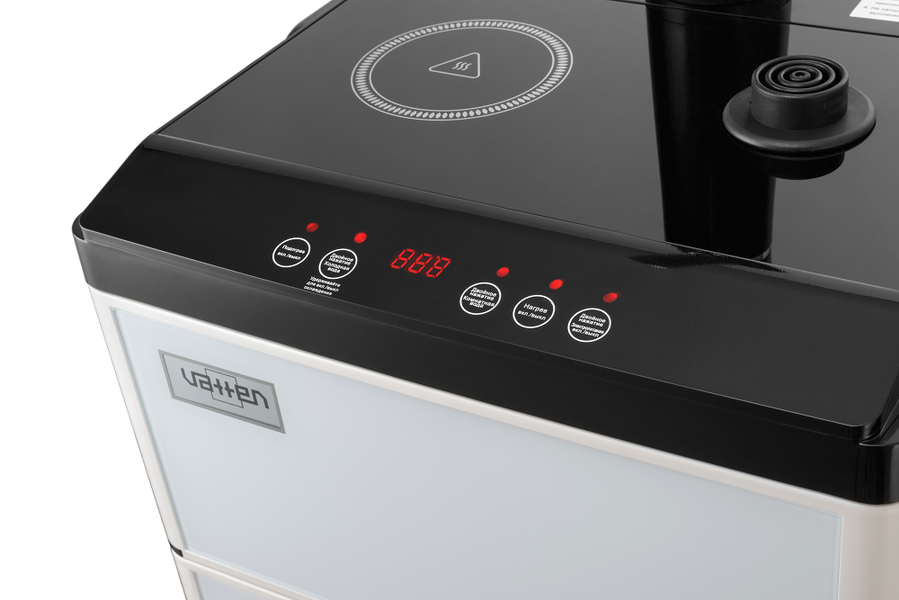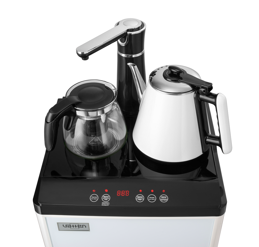 Кулер оснащен двумя чайниками: для заварки чая и для кипячения воды. Чайник для заварки имеет свое ложе для подогрева и поддержания температуры. Вода начинает нагреваться при двойном нажатии кнопки горячей воды. Нагрев отключается при достижении 100 °С. Встроенный дисплей отображает текущую температуру воды. Если вода в чайнике остыла, можно включить нагрев соответствующей кнопкой.