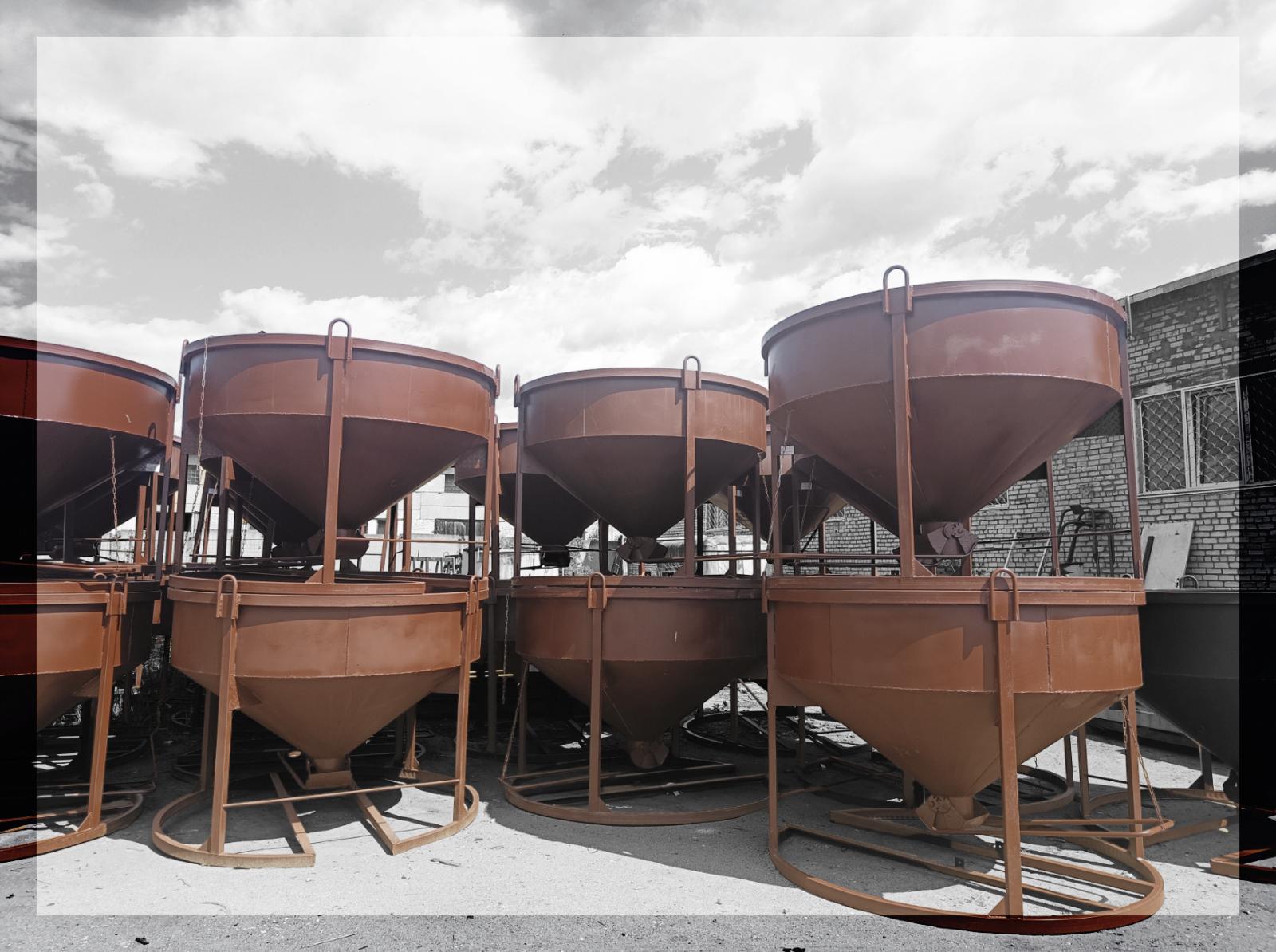 Бункер неповоротный / Бадья для бетона используются для подъема и транспортировки свежей смеси бетона. Разный объем бункеров позволит совершать любые работы связанные со смесями и транспортировкой.