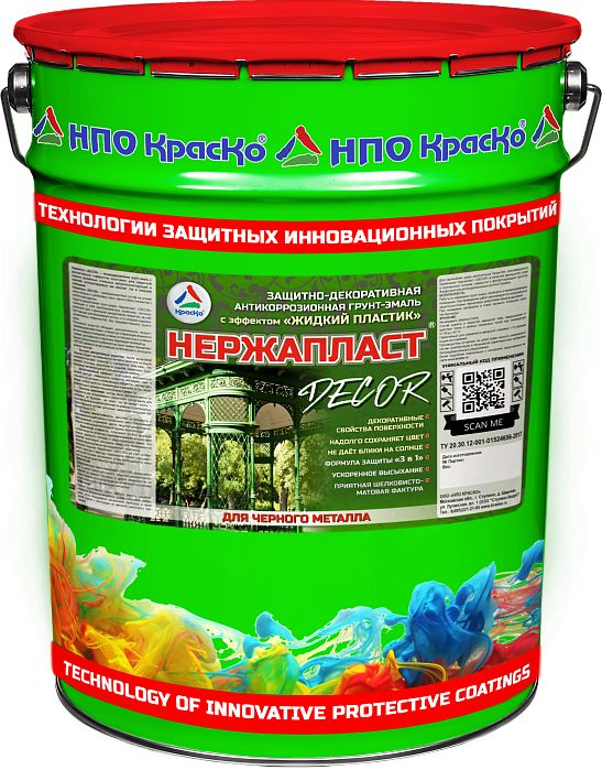 Нержапласт (жидкий пластик), антикоррозионная эмаль по металлу, защитно-декоративная краска с эффектом пластика, 20 кг.