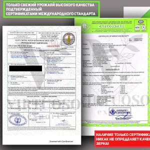 The Superintendence and Inspection of Coffee and Products for Export and Import J.S. Company (CAFECONTROL).Документ подтверждает, что экспортируемая партия кофе, прошла независимую проверку качества и соответствия международным стандартам. В сертификате указаны: