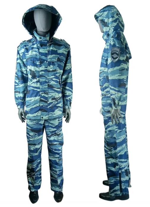Костюм ветровлагозащитный “ОМОН” в расцветке синий камыш. Куртка прямого кроя, имеет скрытый (убирается в воротник) регулируемый капюшон. Центральная застежка на молнии, закрытой ветрозащитным клапаном на кнопках. В области плечевых швов — погоны на кнопках с съемными фальшпогонами для крепления знаков отличия. Два нагрудных кармана по линии кокетки на “молнии”. Два боковых кармана на “молнии”. Внутренний карман на “молнии”. Капюшон складывается в воротник-стойку. По низу рукавов — манжеты с эластичной тесьмой. Объем пояса по низу куртки регулируется эластичным шнуром.