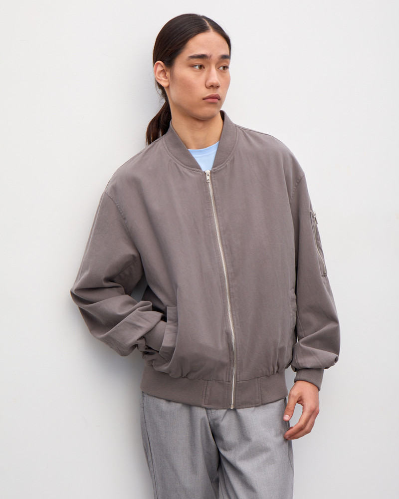 Куртка-бомбер мужская, фасона оверсайз, с застежкой на молнию. Прорезные карманы, объемные рукава, трикотажная отделка на вороте, манжетах и по низу. Модель однотонного цвета, с подкладом внутри. Такой бомбер станет отличным выбором для демисезонных аутфитов с динамичным характером, дополняя футболку и брюки или шорты, соседствуя с джинсами.