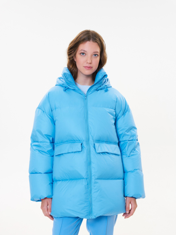 Женский пуховик-оверсайз, с воротником-стойкой и капюшоном. Прорезные карманы с клапанами, застежка на молнию. Модель из практичного материала с водоотталкивающей обработкой, с наполнителем из натурального пуха и пера. Такая зимняя верхняя одежда станет комфортным выбором даже для морозной погоды, дополняя брючные и джинсовые аутфиты в стиле casual.