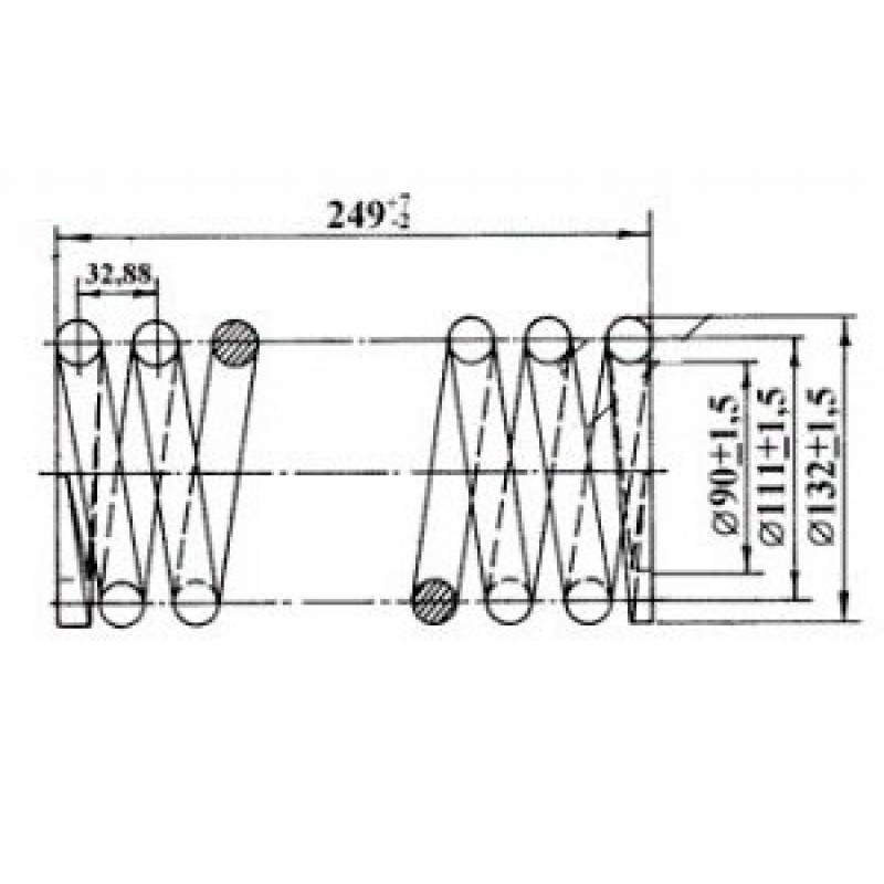 Размер пружин рессорного подвешивания тележки грузового вагона - внешняя 100.30.002 и внутренняя 100.30.004 пружина Допустимые размеры пружины тележки вагона приведены в таблице Пружины с диаметром прутка 21 мм выпускаются с 1989 г.Контроль технических параметров пружин должен осуществляться в