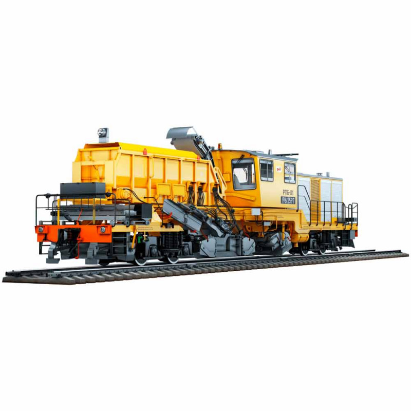 очистка скреплений рельса от балласта.Машина РПБ-01 пришла на замена старой модели планировщика балласта П