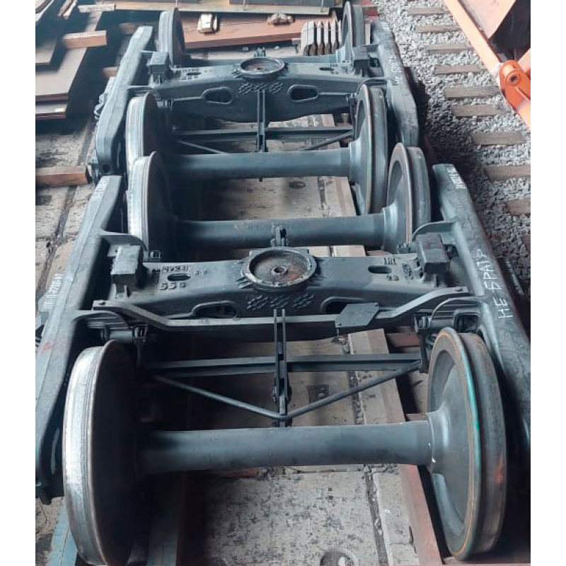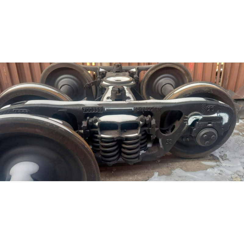 Тележка вагона модель 18-2128 (аналог тележки 18-100) в сборе с колесными парами. Новая, 2022 года, с паспортом.Купить новую вагонную тележку модели 18-2128 в сборе можно из наличия со склада в Кемерово по цене 1 250 000 рублей от компании ВРК-Prorezerv Цена на тележку вагона указана с учетовм НДС. Тележка двухосная предназначена для подкатки под грузовые