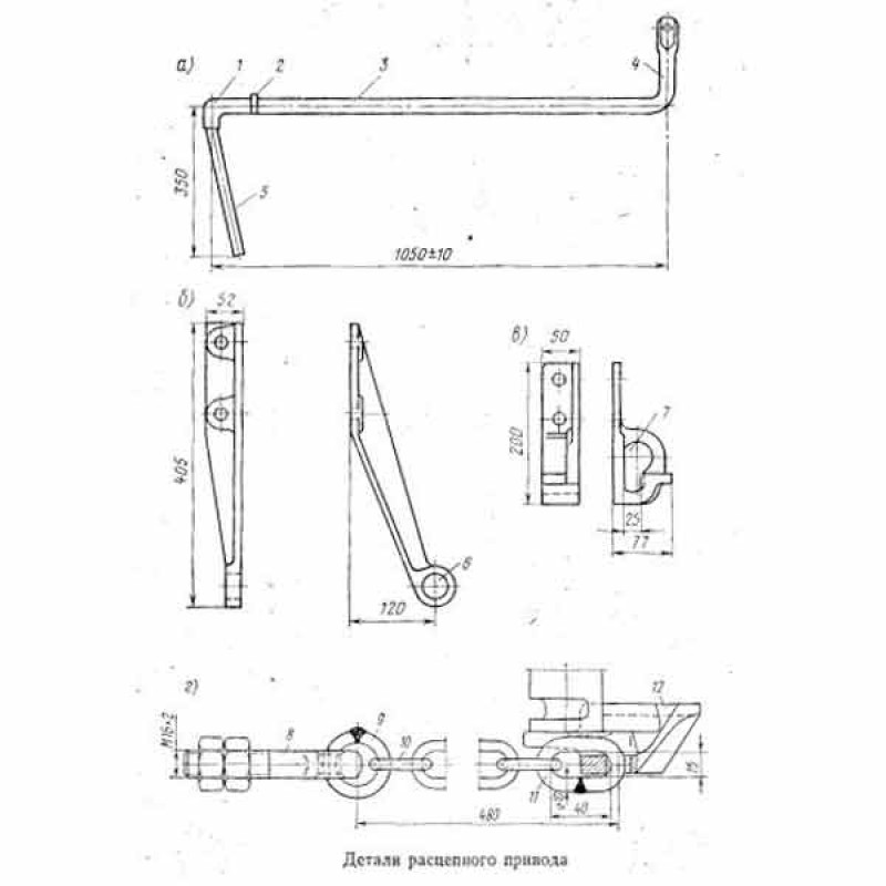 до 2 мм. Расцепная цепь крепится к короткому плечу рычага болтом диаметром 16