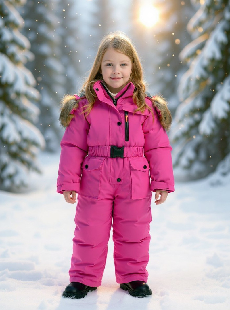 Теплый зимний детский комбинезон для девочки розового цвета из мембранной ткани — отличный вариант для холодной зимы до -35 С. Комбинезон идет строго в размер. Верх комбенизона — материал мембрана, подклад — фольга/флис на выбор, наполнитель 350 гр синтепон.