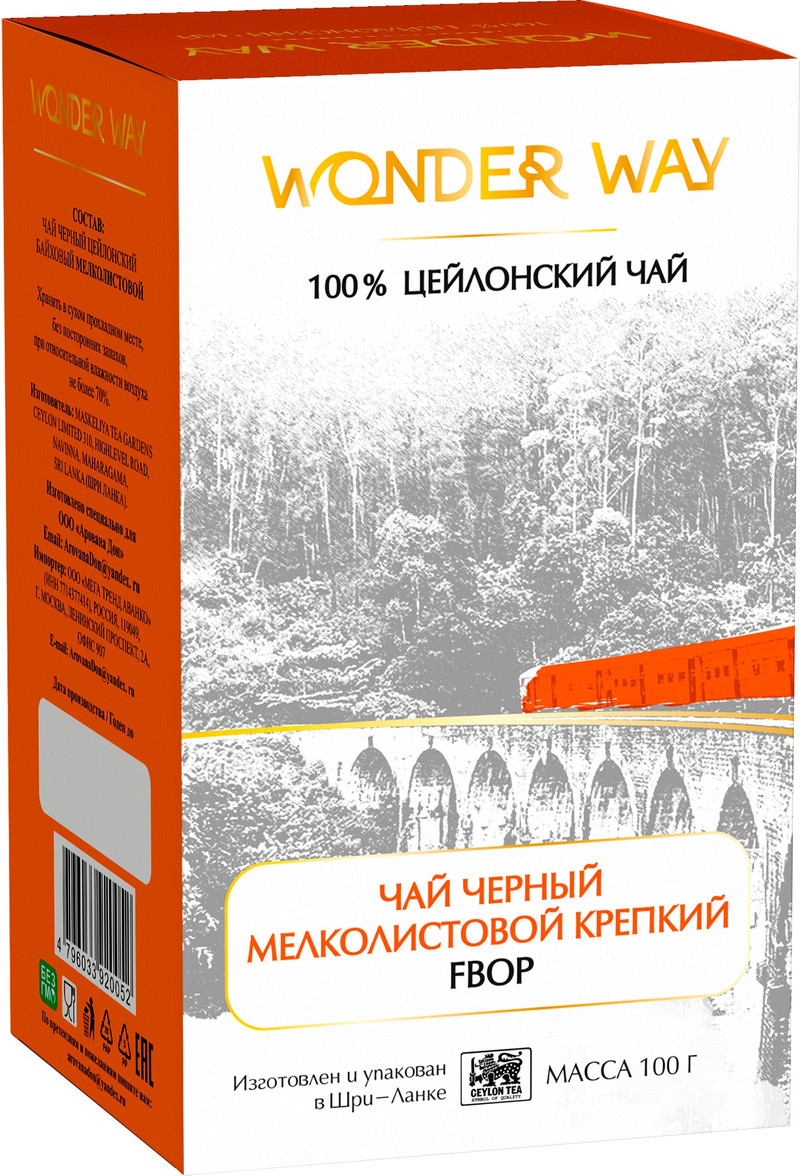 Чтобы купить Чай черный мелко листовой сорт FBOP Wonder Way оптом по цене по запросу, свяжитесь с поставщиком. Компания поставщик — Wonder Way (ООО «Арована Дон») из города Ростов-на-Дону (Ростовская область). Минимальная партия 48 шт. Доставка возможна самовывоз, транспортной компанией, автомобилем, курьером.