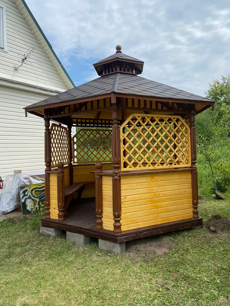 В цену беседки входят лавочки по периметру.